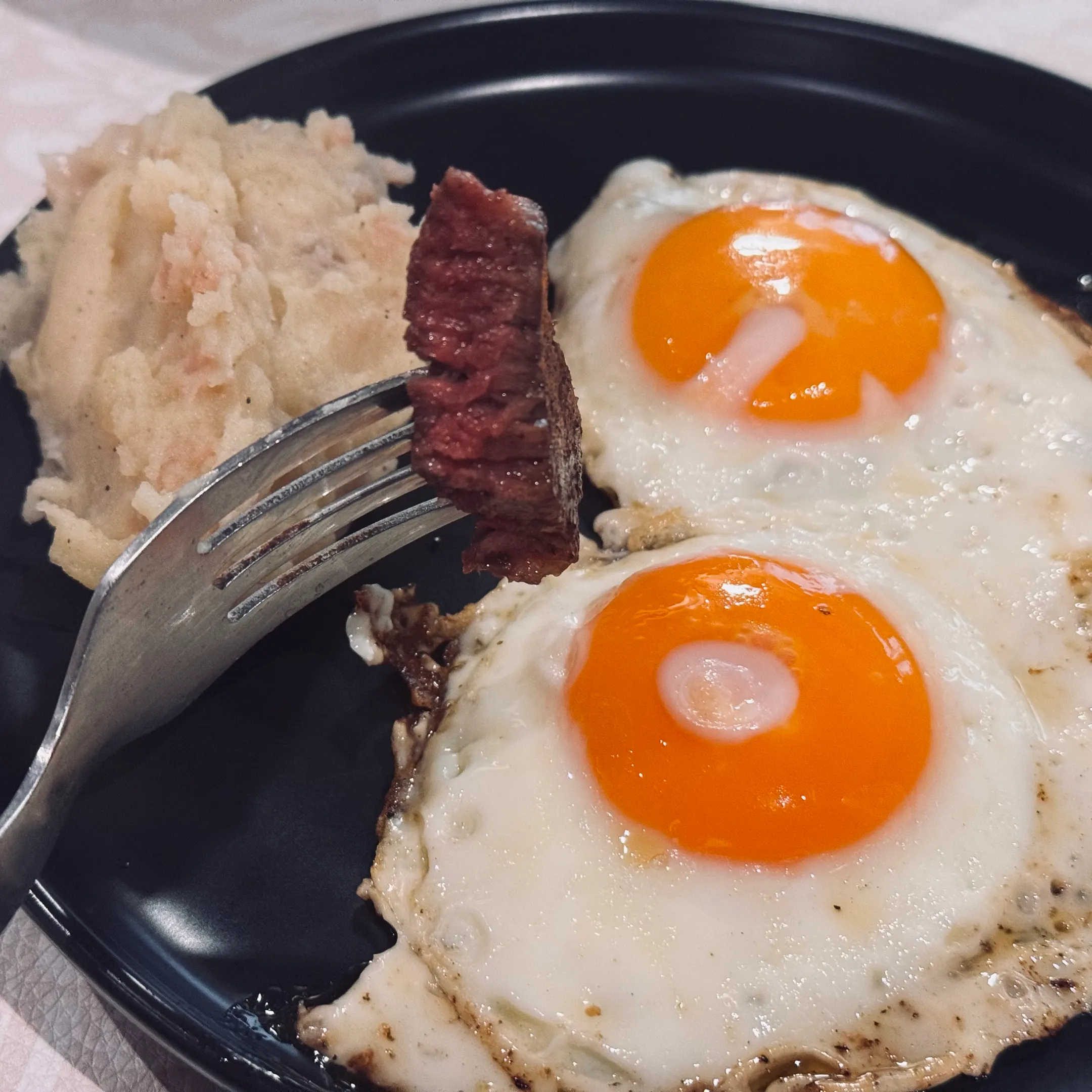 Orange0209:↑今天主人煎了牛排和蛋主食土豆泥,吸溜吸溜˶‾᷄ ⁻̫ ‾᷅˵看起来巨好吃啊!