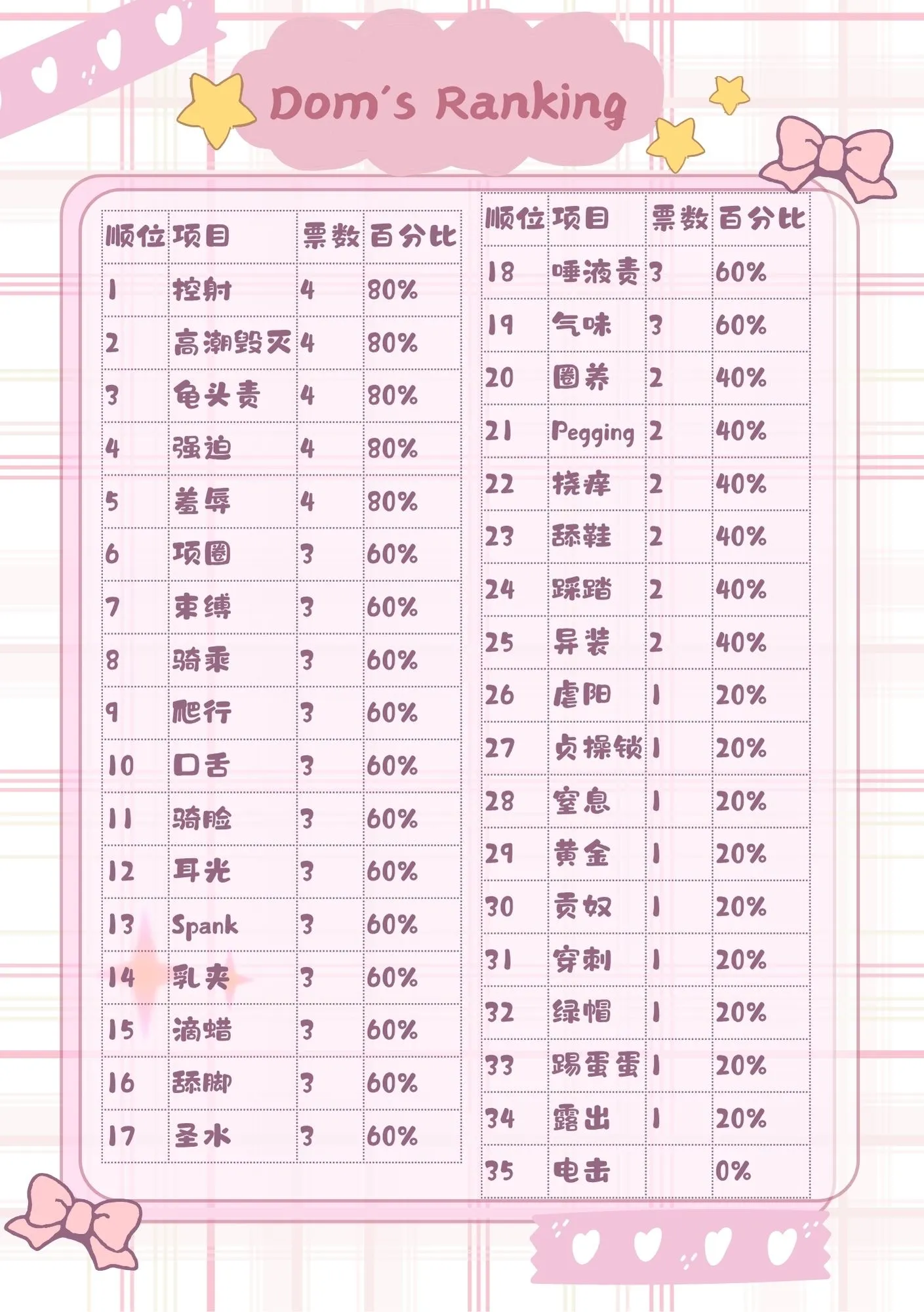 性癖小瓶子,看看大家的答卷(25/7/1主楼更新统计数据)