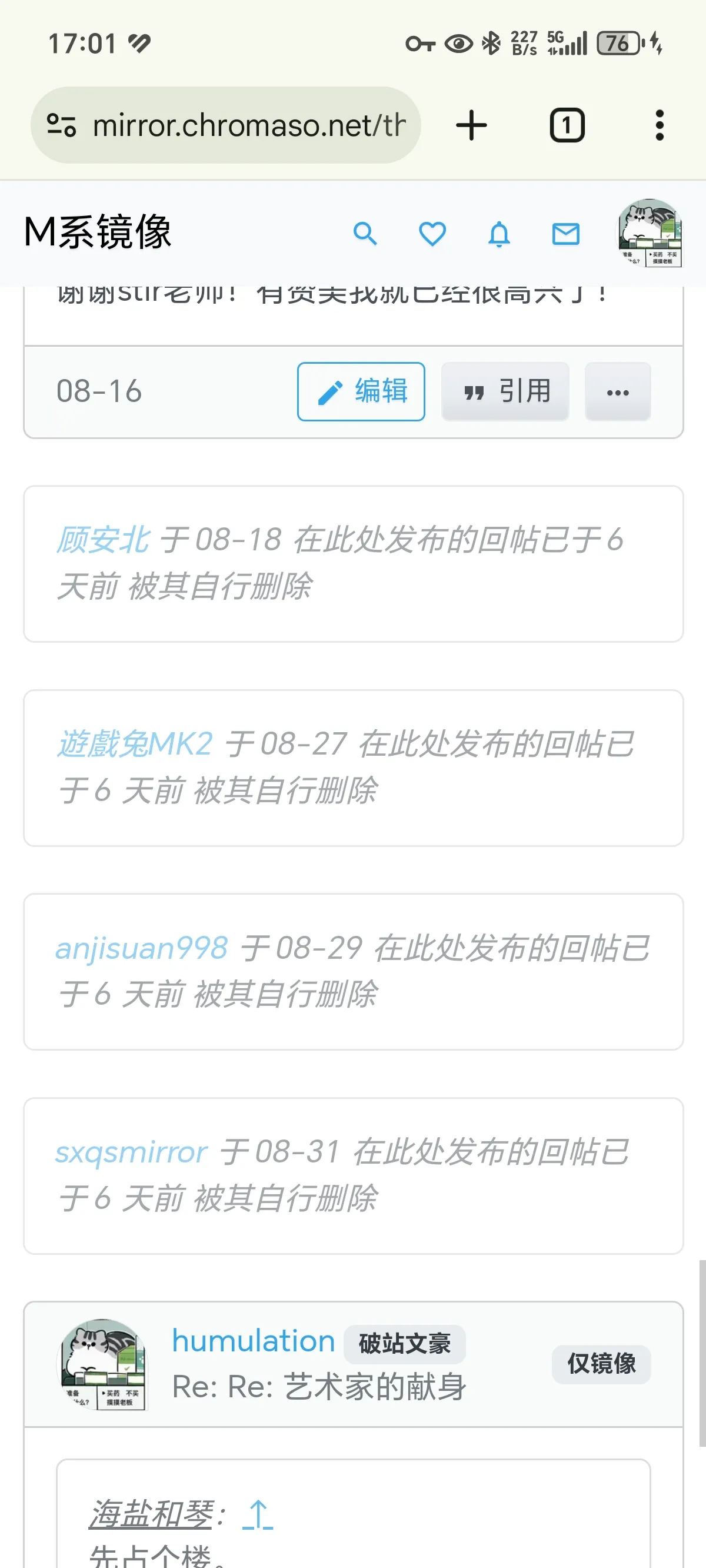 因此不能不留下「这曾有一个被删除的帖子」的标注。