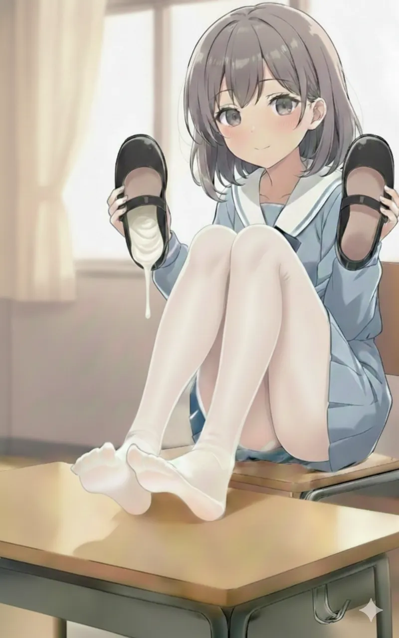 随着鞋子的脱落,那双包裹在白色短袜里的可爱脚掌暴露在空气中 。林华的视线像是不受控制一般向下偏移——他能清晰地看到,在那层薄薄的棉袜足尖处,洇透着淡黑色的汗渍。那是剧烈运动后汗浸湿的痕迹,隐隐散发着一种温热鲜活的少女气息 。