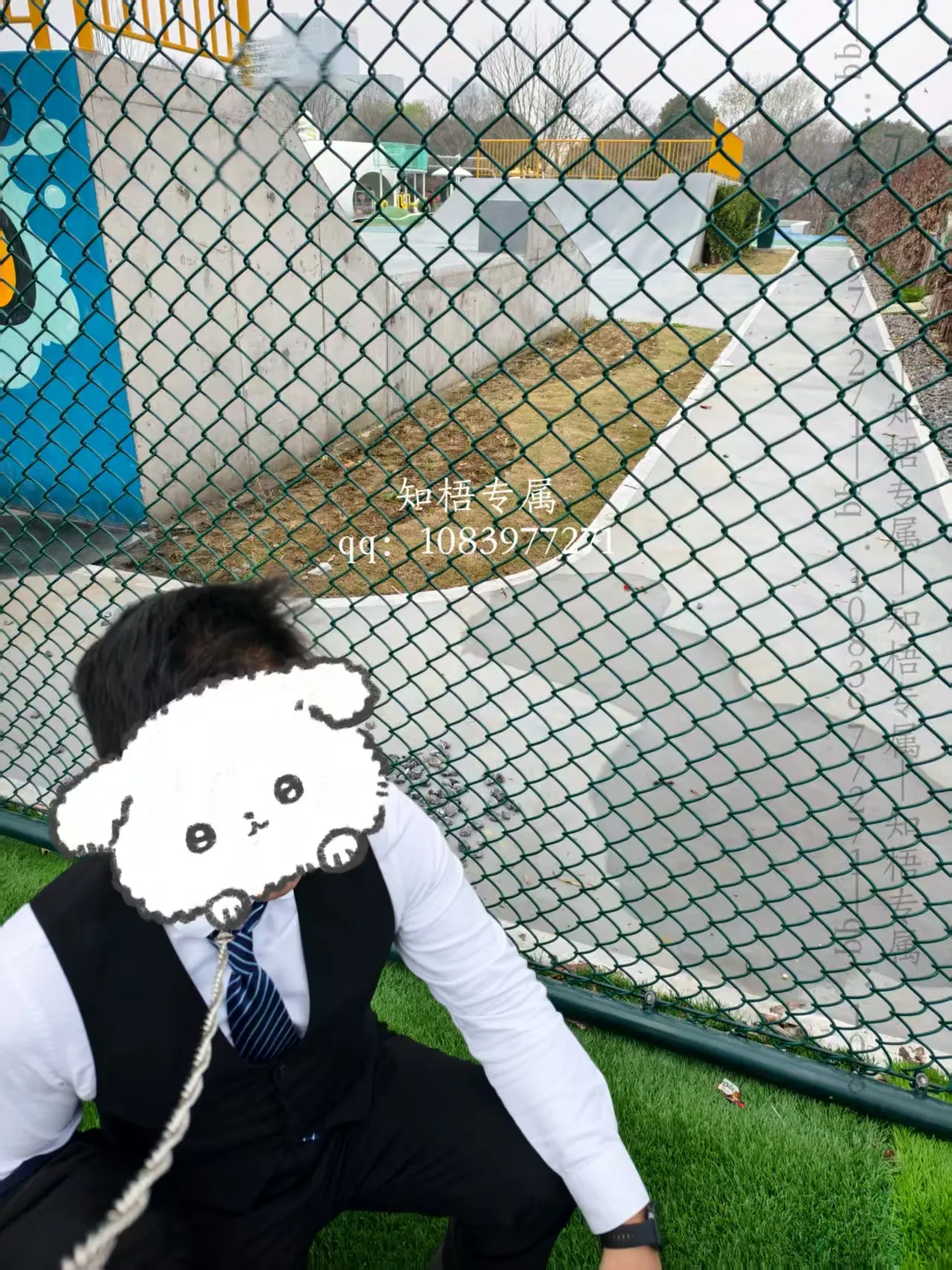 然后我们就仓皇逃离“犯罪现场”,来到一个运动场,然后我们就找了个没有人在使用的,足球场,然后进去了,足球场周围有一圈铁丝网,这样对于远处的人,视线会相对受阻,主人让我蹲下,把狗链从衣服里撩出来,然后就这么蹲着,被牵着狗链把剩下的圣水喝了…