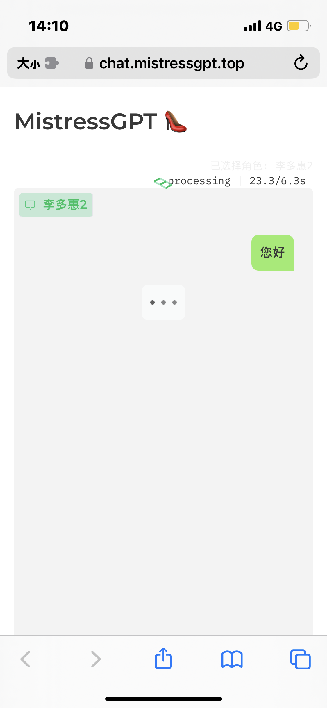 b1250423:↑这个很难实现,因为目前角色的记忆机制不是历史文本,有另一套长期记忆,我们还在开发更长期的记忆,所以不好搞。不过你说卡住的问题。一般对话多少次会出现这个情况?能不能录个屏我看一下?因为我这边基本上对话上百条也没问题dakls:↑感谢回覆,因为目前对话没几句就会突然停住只能重开,我想直接复制历史文本丢进新开窗口里b1250423:↑生成文本都挺短,是受限于token吗?我打字太多会不会影响对方生成上限?不是受限token,是因为主要就是为对话的,但是你可以诱导它生成场景描述,比较长字数的,包含细节描写的。另外,打字多不会影响,因为我们已经做了处理。除非你一次性输入的字数就超过了gpt3的上限,那样的话肯定不行了。你可以试试输入一两百个字之类的,是肯定没问题的。